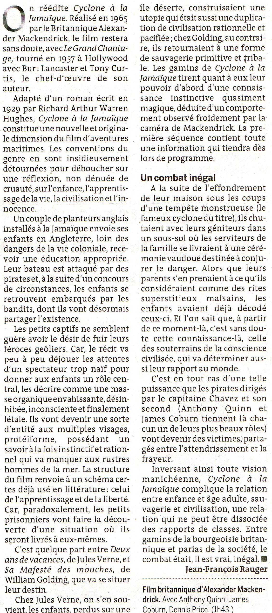 CYCLONE A LA JAMAÏQUE (A High Wind in Jamaica)