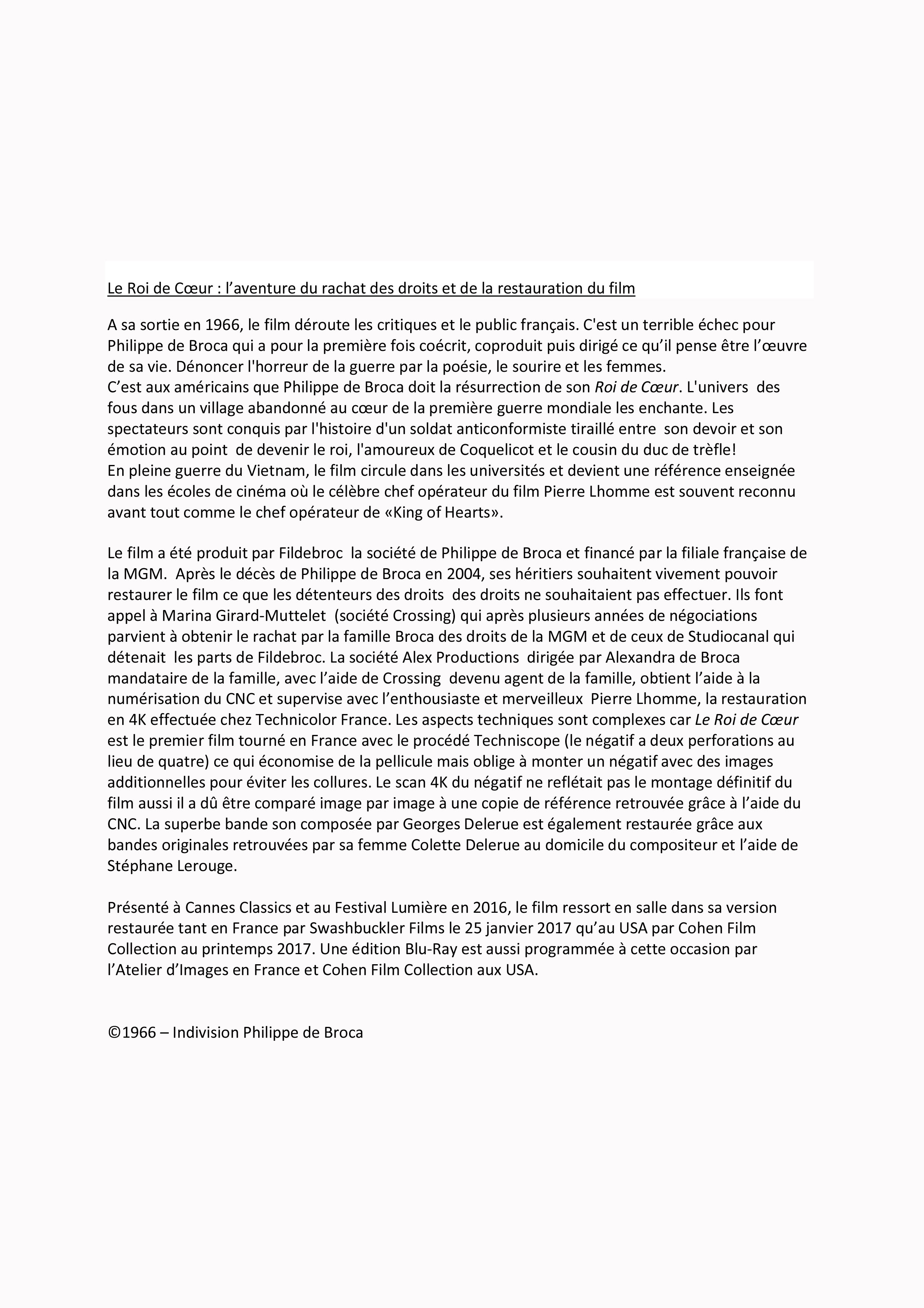 Production : Philippe et Michelle de Broca (Fildebroc)